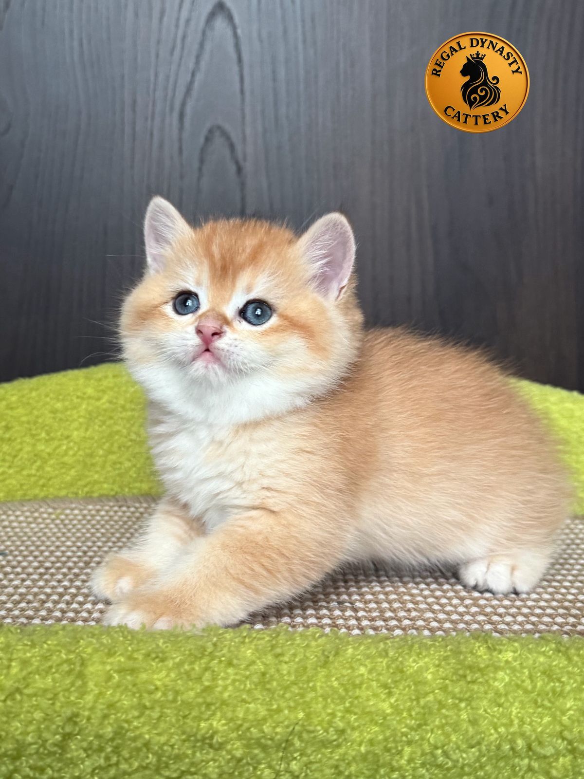🔹 An exceptional British Shorthair golden male with a broad, balanced face, strong body, and luxurious golden coat. Carries pure bloodlines from the most prestigious Russian champion lines, renowned for beauty and stability.